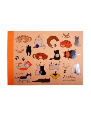 Альбом для рисования 40л А4 "Котики" склейка, крафт-картон, выб. лак 6