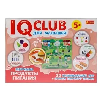 Ранок IQ-club. Для малышей. Изучаем продукты Набор включает: 20 развивающих игр + правила здорового питания, 2 игровых поля + 24 жетоны с продуктами, 4 поля с продуктами питания,Имеют по 6 съемных треугольников-пазлов с изображением продуктов. Знакомим ребенка с правилами и продуктами здорового питания. Изучаем особенности сервировки стола, группирования элементов по общему признаку и сравнения с реальными предметами. Игры имеют разный уровень сложности. Изготовлено из качественного и безопасного картона, покрытого с обеих сторон защитным покрытием, национальный продукт, базируется на передовых методах обучения и воспитания детей от 3 лет, развивает логику и математические способности. 0