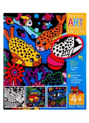 .Сочетание разноцветных красок и черного бархата создает неповторимый цветовой эффект. Бархатная поверхность помогает ребенку аккуратно выполнить работу.