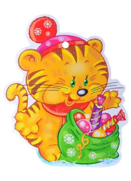 None Вырубная фигурка "Тигренок с подарками"